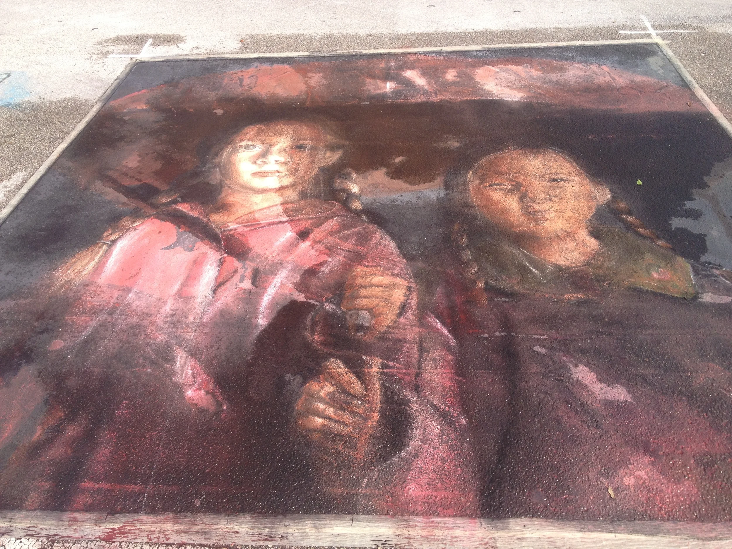 As chalk artists, we don't say the r-word! No, if it rains, I will cover the piece with a plastic tarp. It's not a perfect system and I sometimes still have to repair water damage, but that's part of the art form.